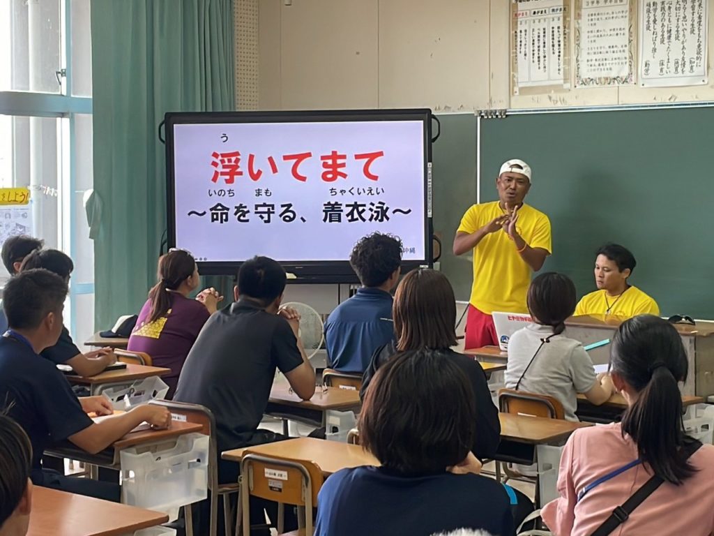 沖縄県ではシュノーケルの事故も多く、万が一水難事故に遭った時に、どのような行動をするのか、どのようにして「自分の命を守る」か。また、「水難事故に遭わないためには、どのような備えが必要なのか」を伝えています。